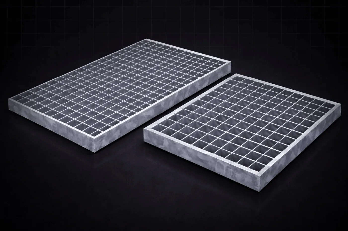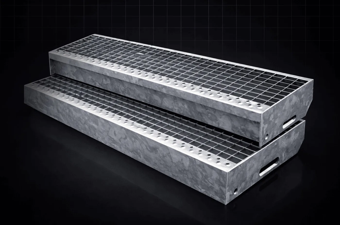 Gitterroststufe Treppenstufe Maße: 800x270 mm 30/30 mm S235JR (St37-2), im Vollbad feuerverzinkt